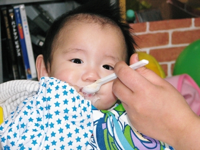 離乳食開始初日は小さじ1から与えるようにします。赤ちゃんが食べられるようなら、日を追うごとに1さじずつ増やしていきましょう。離乳食中期は、1食あたり7倍がゆを50g~80gほど与えるようにします。
