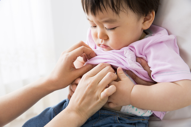 手づかみ食べがはじまるのも、この頃が多いようですね。赤ちゃんが自分の指先を使って食べるのは成長にとてもいいことですので、つかみやすく食べやすい食事にしてあげましょう。食事は1日3回となります。