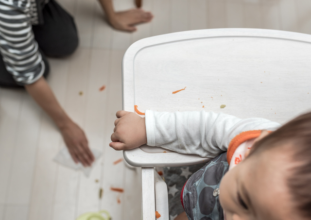 食卓や赤ちゃんの椅子の下に新聞紙やレジャーシートを敷いておくと、食べ物をこぼしてしまっても汚れる心配が少なくなりますよ。