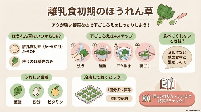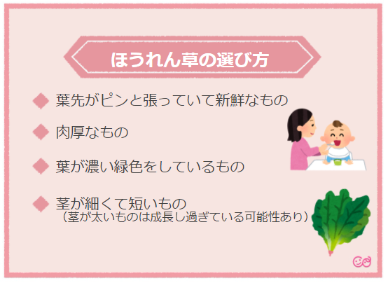 離乳食初期のほうれん草の食べ方についてまとめましたが、いかがでしたか。