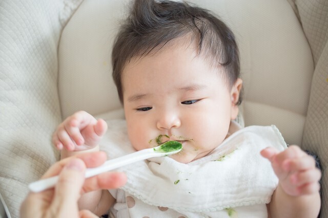 はじめての食材はアレルギーの心配もあるので、1日1回、スプーン1さじからが基本です。離乳食の進み具合に合わせて、ほうれん草を無理なく少しずつ食べ進め、食べられる量を増やしていきましょう。