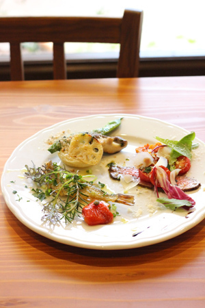 農家から直送された野菜や地魚を使ったパスタやピザが好評で、1,100円と、1,500円から選べるランチセットにはどちらも前菜、パスタ、パン、ドリンクが付いてきます。プラス200円でドルチェも付けられるので、食後も大満足です。