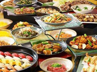 土・休日は和食惣菜、天婦羅、握り寿司、鉄板焼き、甘味食べ放題(大人3,500円、小学生2,500円、3歳~未就学児1,500円)!
