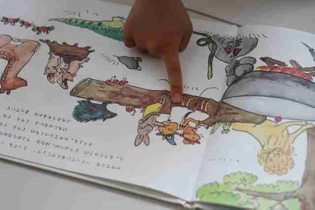小さいお子さんは大きな絵本として楽しめて、目の不自由な方は点字で楽しめます。