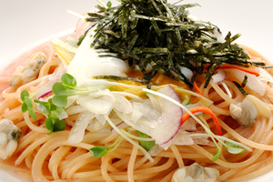 店内の通路は広く、車いすやベビーカーでの入店ができます。ランチメニューは、ホテルのシェフが腕を振るった目にも美しいパスタや魚料理のセットが人気です。