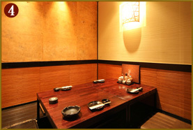 個室の広さは数タイプがあり、掘りごたつ席、テーブル席が選べます。また、ボックスタイプのソファー席もあり、落ち着いた和の空間でゆっくりとくつろぐことができます。