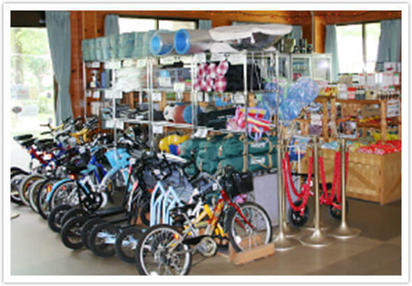 また他のキャンプ場ではあまり見られない、自転車やスケーターバイク、フリスビー、ミニ卓球台などといったアクティビティ用品もレンタルすることができるのもうれしいですね。