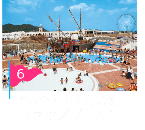 水深が浅いキッズプールには帆船があり、中には滑り台やアスレチックもあって子ども達も大満足間違いなし!おむつがまだ取れていない小さな子どもも、水遊び用おむつを着用すれば利用可能です。浮き輪や、キッズ用フロートベストの貸し出しも行っていますよ。