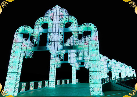 またランタンのイルミネーションや100万球以上も使用したイルミネーションアーチもとても美しく、見逃せません。各イルミネーションは日没後から閉園まで点灯しています。