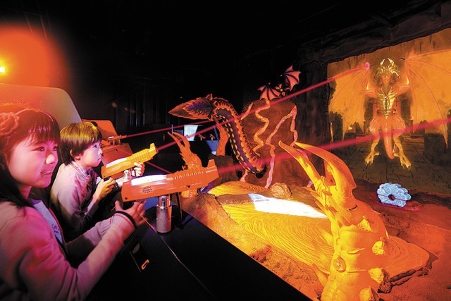 そしてこの遊園地の中でも特に人気のアトラクションである「ドラゴンファイター」。ライドに乗り、4つのシーンをめぐりながらレーザー銃でドラゴンやモンスターを倒す冒険ができます。迫力の映像と、自分の手で的を倒す感覚は、子どもにとってはたまりませんね。