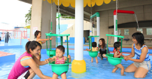 中でも珍しいのは、1歳以上から利用可能なブランコ型の水遊び遊具、ベビーバンジー。水の中をピョンピョン飛び跳ねて赤ちゃんが遊ぶことができますよ。