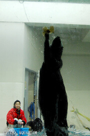そんなラッコのお食事タイムは、9時40分、13時(貝のみ)、16時20分と1日に3回ですよ。運が良ければ、ガラス面に張り付けたイカをジャンプしてとる「イカミミジャンプ」が見られるかもしれません。