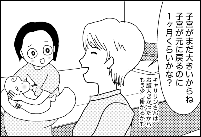 赤ちゃんが出た後も、子宮が大きいままだからとか。