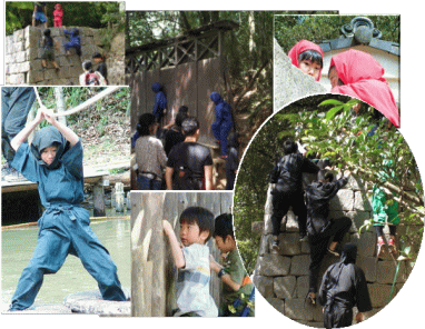 参加方法は、忍術道場開催のアナウンスに合わせて参加する方法と、オリエンテーリングとして自由に忍術修行をしていく方法の2種類。