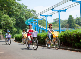 本格的に自転車を楽しみたい方も、のんびりサイクリングを楽しみたい方も両方満足できる「自転車の国サイクルスポーツセンター」。子どもの自転車上達にも一役買いますね。