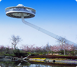 2つめは「アイランド富士」。富士山の周りにベンチを配した様な形のユニークな展望台で、地上から45mの高さまで上昇します。