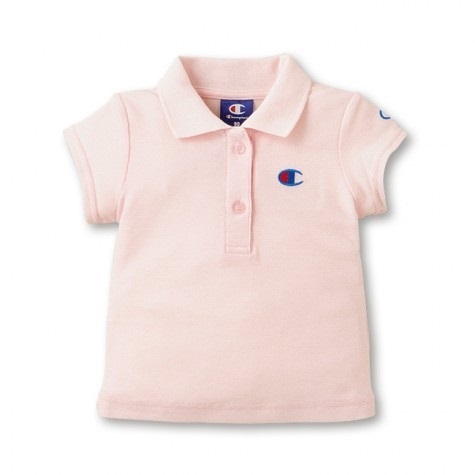 女の子の”合わせ”で、袖がフレンチスリーブ風になって女の子が着ても違和感のないポロシャツです。カラーは写真の薄いピンクのほか、ネイビー、ホワイトの3色。