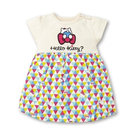 さりげないキティちゃんの柄は、普通はキャラものを着ない子にもおすすめ。スカート部分はフタフタらしく、北欧系っぽいカラフルな色。