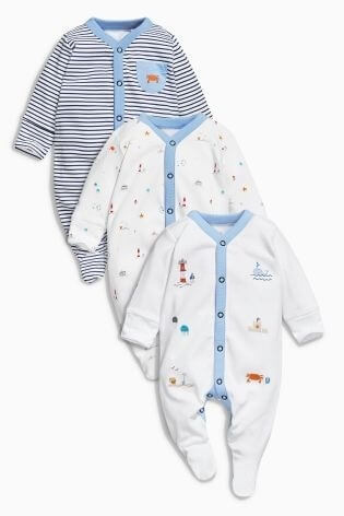 出典:jp.nextdirect.com新生児の頃から着せることができるオールインワンのパジャマです。スナップボタン留めになっていて、写真は男の子用です。パジャマは、3枚パックのまとめ売りで、UKサイズで2歳まで展開しています。
