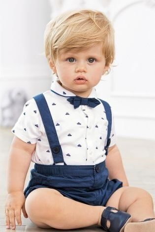 出典:jp.nextdirect.com【1】のパジャマ3点セットにも驚きましたが、こちらは、フォーマルにも活用できそうなブルーのサスペンダー、ショートパンツ、トップス(オールインワン)の3点セット。