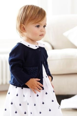 出典:jp.nextdirect.comこちらのワンピースは着るだけでお嬢様風になるAラインシルエット。ネイビーの刺繍が入ったカーディガンを合わせています。