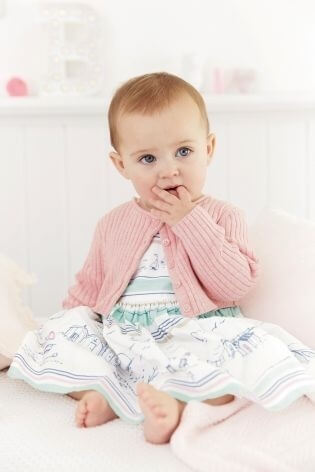 出典:jp.nextdirect.comリブ素材のピンクニットカーディガンに、ホワイトの柄入りワンピース!色合いがなんともおしゃれですよね。こちらもお得意の「セット」アイテム!