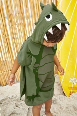 出典:jp.nextdirect.comこちらは水着の上からはおったり、お風呂上がりに使ったり。ちょっとふざけた雰囲気がかわいい、カーキ色の「恐竜になれる」ポンチョ。かわいい!!