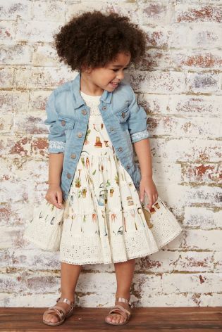 出典:jp.nextdirect.com白に近いベージュ地に野菜やシャベル、じょうろ、うさぎなど「ガーデン」をイメージした絵柄が描かれたワンピースです。