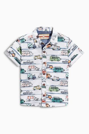 【14】ホワイト 自動車プリント シャツ
