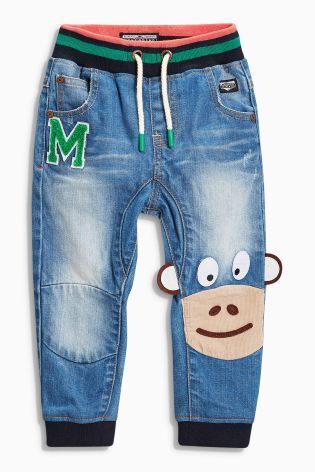 出典:jp.nextdirect.comデニム素材だけど、コットン100%の履きやすいパンツ。リブ素材のゴムウエストで脱ぎ履きさせやすく、ズレ防止にもなりますね。