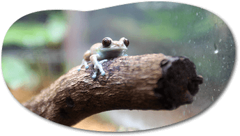 水槽では自然の環境に近づけるために自動的に雨が降る仕組みになっていて、植物も植えられ自然に近い状態で生息しているカエルを間近で見学することができます。