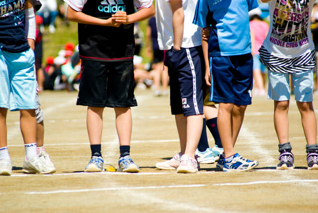 ジャージの上着が暑いと感じる時期には、上にはTシャツを着て、ハーフパンツのジャージを履くと良いでしょう。