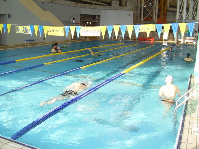 競泳用プールは子どもばかりではなく、歩行コースも完備されているので、ウォーキングをする人もたくさんいます。こちらでは大人も子どもも水泳帽子が必要です。