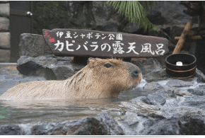 カピバラは寒さが苦手で、冬場には露天風呂に浸かります。とってもお風呂が大好きで何時間も使っていることもあったり、泳ぎも得意です。夏にはプールに入ることもあります。水の中での動きが本当にかわいいですよ。