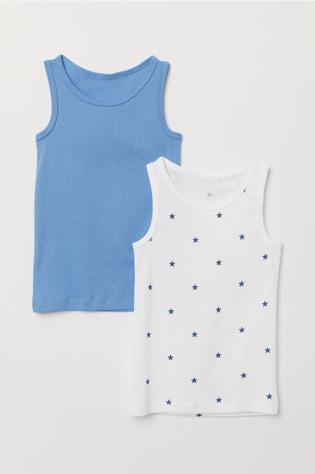 出典:www2.hm.com公式通販が開始され、注目が集まるH&M。こちらのタンクトップは、シンプルで使いやすい無地とかわいいプリント柄の2枚セット。2枚で999円とお手頃価格です。