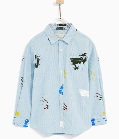 出典:www.zara.comZARA(ザラ)から発売されているペイントスプラッターストライプシャツ。その名の通り、シャツにペンキで塗ったようなさまざまな色がプリントされている、ユニークな一品です。