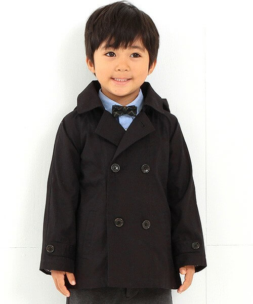 トレンチコートについてですが、パパが着ていてもおかしくないような大人なデザインになっています。我が子のこんなダンディーなトレンチを着ている姿を見てみたくないですか?
