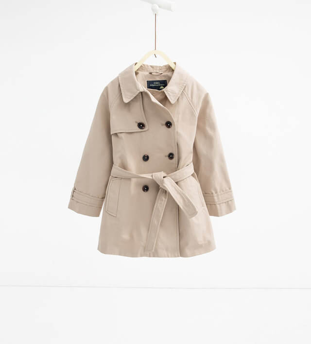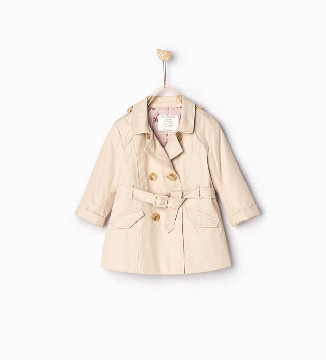 出典:www.zara.comおしゃれママに大人気のZARAベビーからも女の子用のトレンチが出ています。こちらは中綿入りの裏地付きなので、寒い時のアウターとしても使えますね。