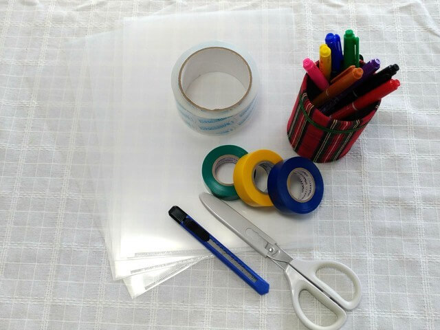 また、色のついたクリアファイルで作ると、セロファンを貼る手間もはぶけてきれいに仕上がります。