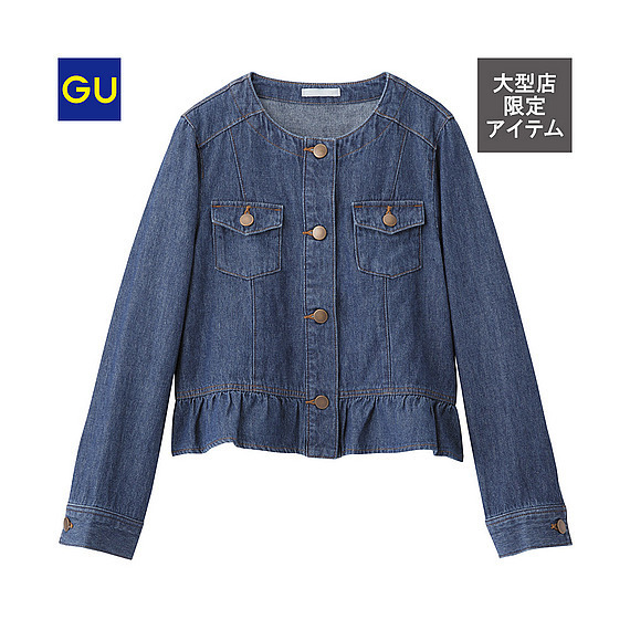 出典:www.uniqlo.comプチプラアイテムが豊富なGUでは、女の子向けのかわいいノーカラーデニムジャケットがおすすめです。