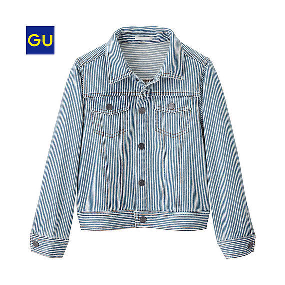 出典:www.uniqlo.comこちらは同じくGUから発売されているデニムジャケットです。形は、オーソドックスなデニムジャケットですが、ヒッコリー柄とホワイトデニムの2種類のラインナップです。