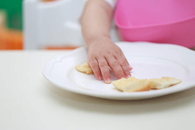食べやすい大きさで焼くか、大きく一枚焼いて、ちいさく切って食べさせましょう。