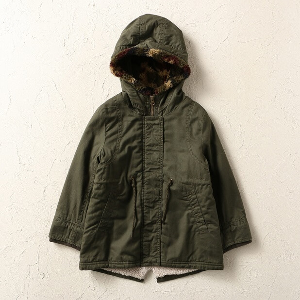 出典:www.amazon.co.jpカラーバリエーションは迷彩とカーキの2タイプです。着回し力で選ぶならカーキ、男の子ぽくハードにきめるなら迷彩が良さそうです。フードは取れませんがファーはボタンで取り外しができるので、コーデや気候に合わせて使い分けできます。