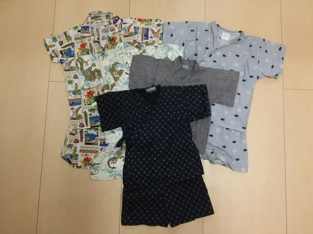 甚平はゆったりとした衣類なので動きやすいのはもちろんですが、洗濯しても乾きやすい素材のものが多いので使い勝手がいいです。
