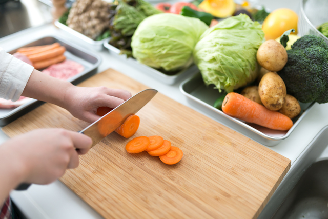 2. たまねぎと好みの野菜を細かく切ります。にんじん等の硬い野菜を使う時は、あらかじめレンジで1~2分加熱しておきます。
