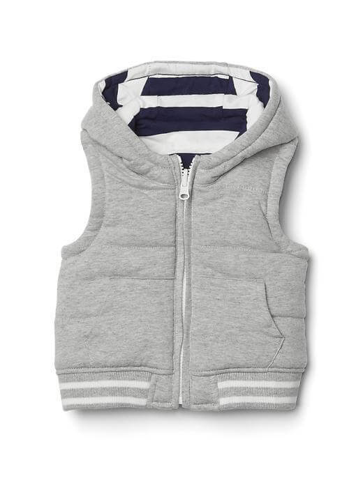 出典:www.gap.co.jpGAPのベストは洗濯機の使用がOKなので、外遊びで汚れてもすぐに洗えて便利です。フード付なので、肌寒い時にはかぶれるのもいいですね。グレーとシンプルなボーダーで、おしゃれに着こなせます。サイズは60~90までが揃います。