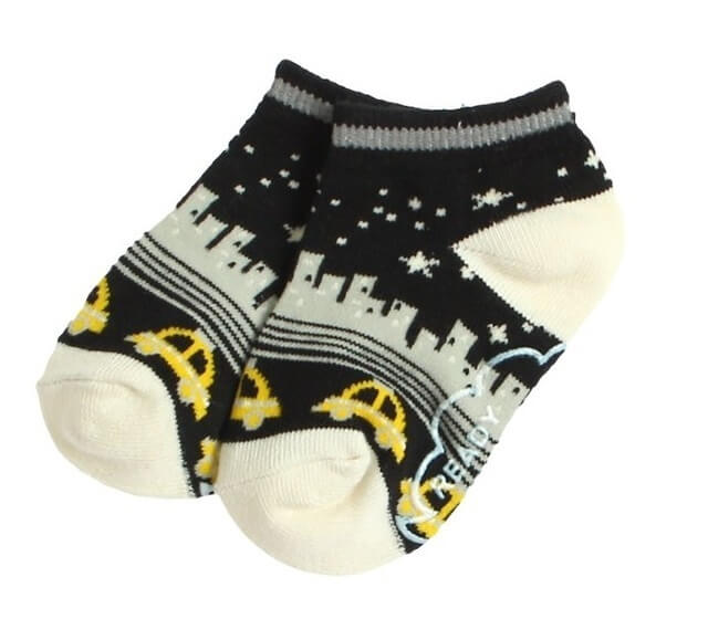 出典:fo-online.jpおしゃれなブランドものソックスのように見えるナイトシティソックスは、夜の街に走る車がモチーフです。写真のブラックのほか、ネイビーブルーの色があります。