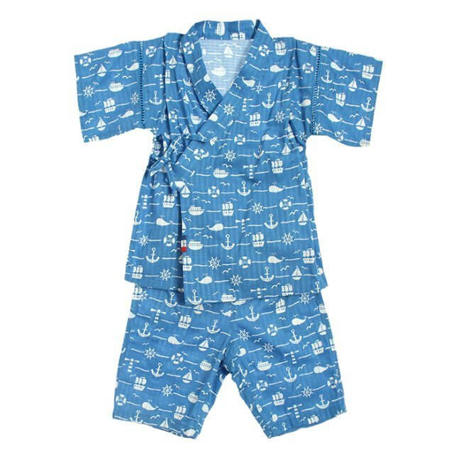 マリンな洋風柄モチーフですが、甚平ならではの生地とテキスタイルのタッチが、和らしさを損なっていない洗練されたデザインです。
