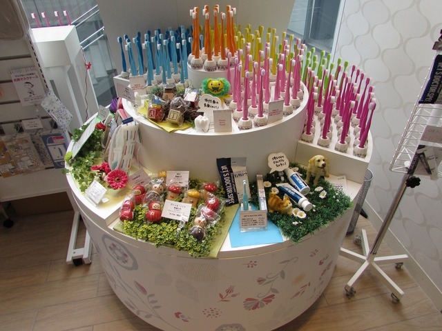 実は、特に子どもさんにはきちんと合った歯ブラシを選ぶために、コンシェルジュに相談してもらいたいと、あえてこうした陳列を行っているのだそうです。歯の大きさや生え方は人によっても違うので、ぜひ、気軽にお口コンシェルジュに相談してみてくださいね。