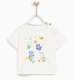 出典:www.zara.com68cm~104cmまでのサイズ展開で、3ヶ月ごろの赤ちゃんから4歳ぐらいまでのお子さん向けのTシャツです。
